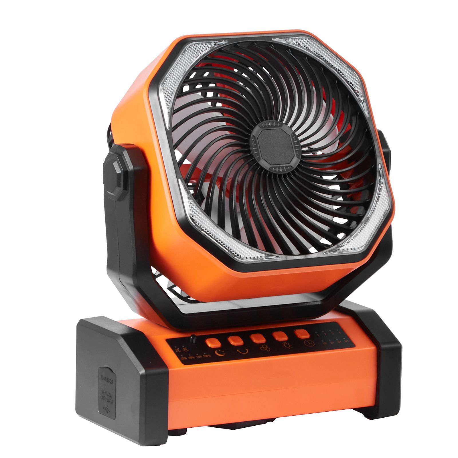Come with 16 surrounding LED lights with 3 levels of adjustable brightness, providing an ideal light source for nighttime outdoor activities. The fan has a stable base that securely holds the fan even during high-speed operation.