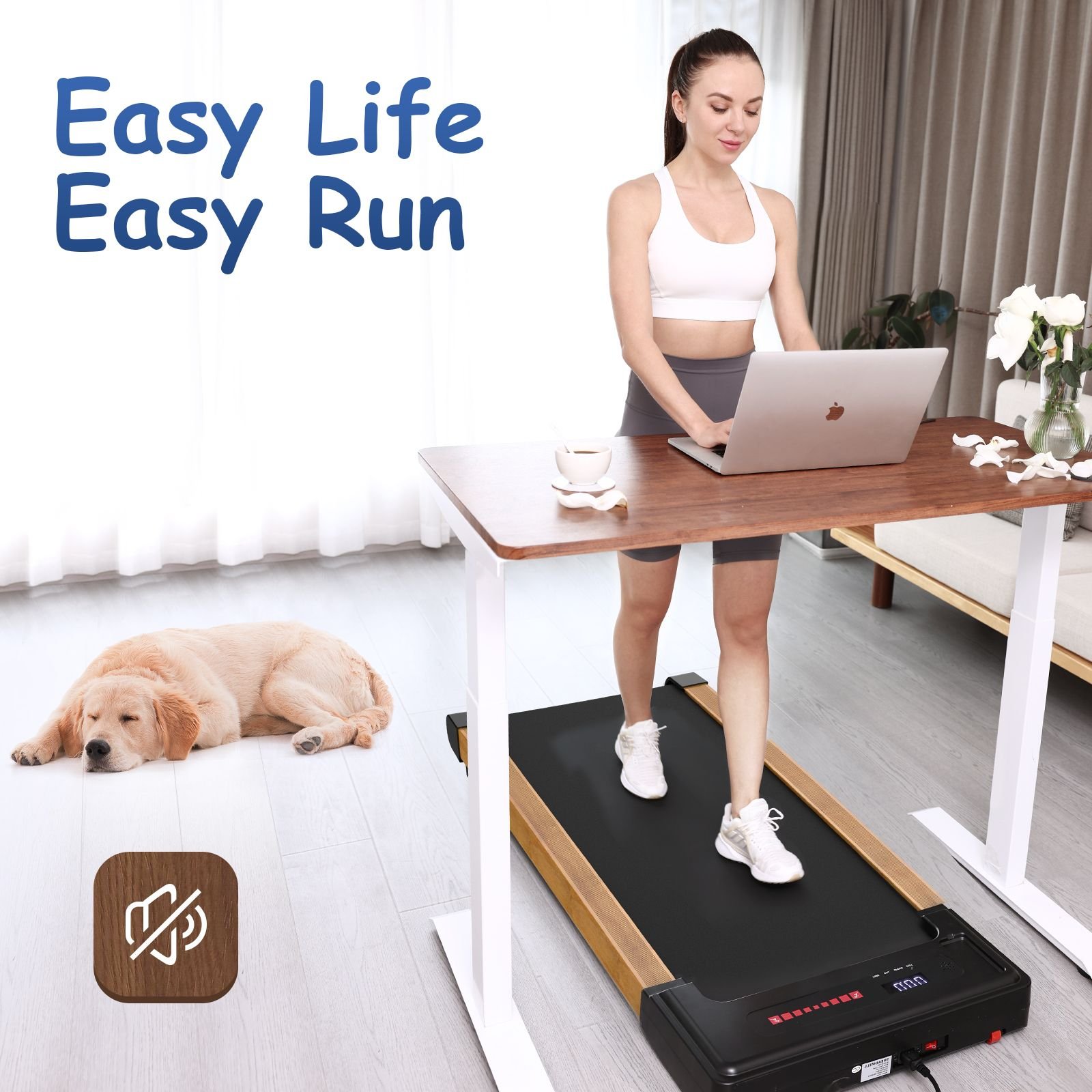 2.Installation-free & Super Quiet Motor : This walking pad treadmill arrives with fully assembled already which can be used directly after unboxing.Considering that most people are using the compact treadmill at home, we designed a high-powered quiet 2.5HP motor, a shock-absorbing running belt made of PVC, fiber and cotton yarn, and 4 shock-absorbing foot pads that help reduce noise and improve stability while running.