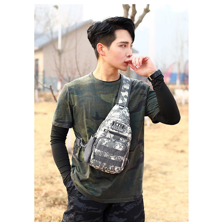 2.Unbalance backpack wearing styles: It has great flexibility. You can use it both as chest pack and shoulder bag. Also it can be worn in the front or back of body.