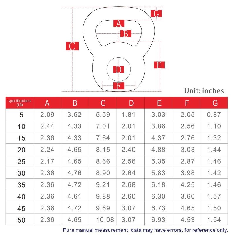 4.Wide non-slip handle for easily and firmly gripping, Weights are clearly marked in LB, Easy to read sizing.