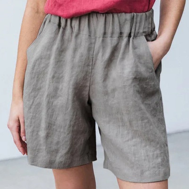 Home > Cotton Linen Solid Shorts Female Elastic Waist Knee-length Pocket Short Women 2021 Summer Fashion Thin Soft Women's Homewear
