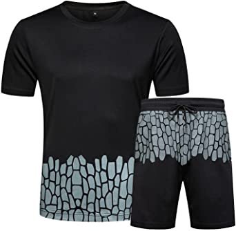 Men's Casual Crack Pattern Suits Fashion Short Sleeve T-Shirt And Shorts Loose Two-Piece Sets