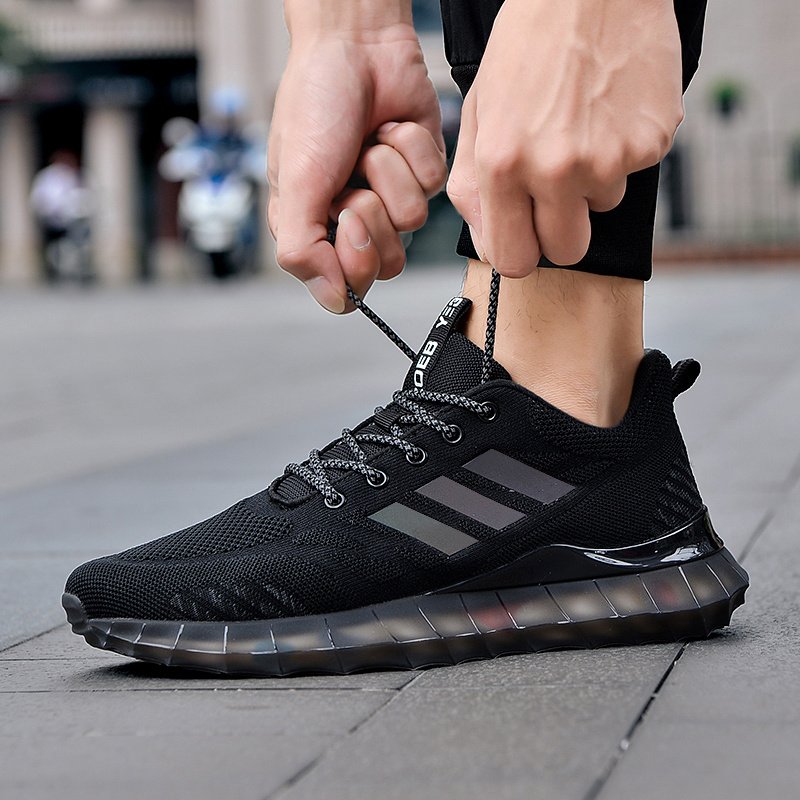 Home > Popular men's breathable flying woven sneakers casual mesh shoes Popcorn sole running shoes 39-44
