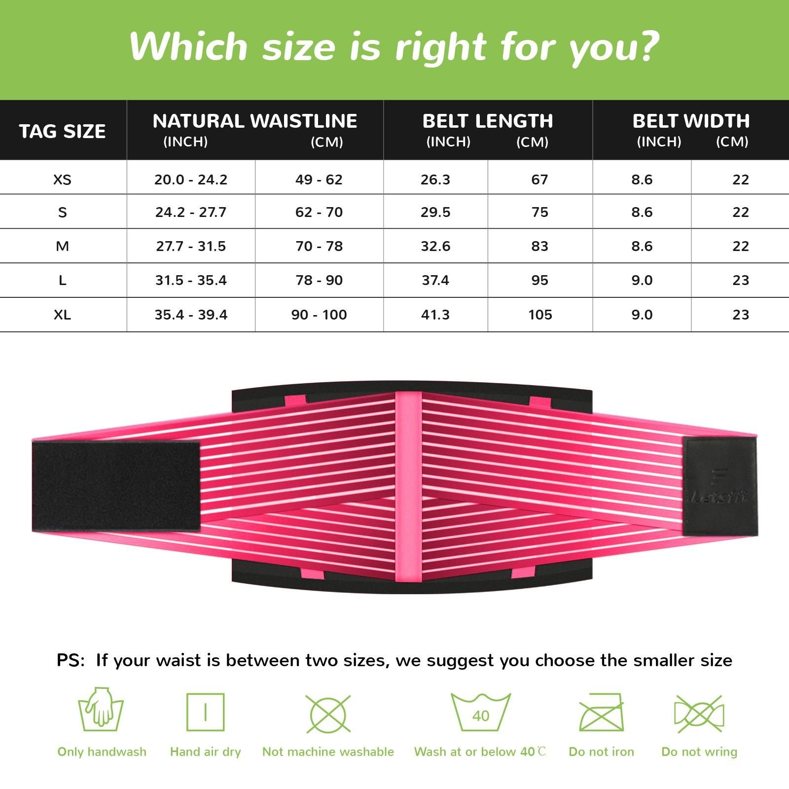 About our women's waist trainer: designed to make you sweat crazy and enhance your exercise to achieve your desired goals. 1. Packing quantity: 1 sweat-absorbent belt training belt. 2. If you are sensitive to neoprene; please wear it on a shirt. 2. Hand wash. Please check the size chart on the left and use our size chart instead of Amazon size.