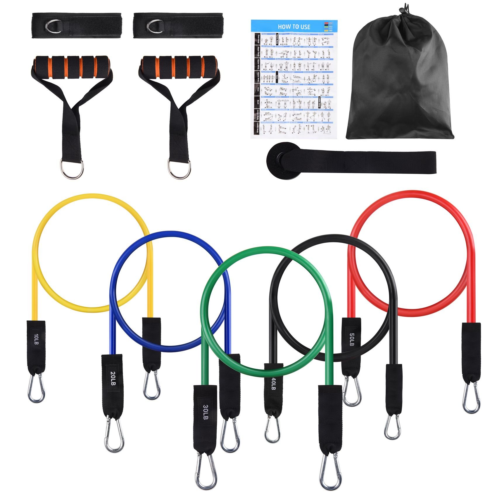 FITFIT Resistance Bands Set, 5 Stackable Tube Exercise Bands with 2 Handles, 1 Door Anchor, 2 Ankle Straps FITFIT Resistance Bands Set, 5 Stackable Tube Exercise Bands with 2 Handles, 1 Door Anchor, 2 Ankle Straps FITFIT Resistance Bands Set, 5 Stackable Tube Exercise Bands with 2 Handles, 1 Door Anchor, 2 Ankle Straps