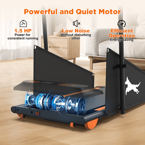 Pet Treadmill Enhance Your Pet's Fitness Maintaining your pet's health can be challenging, especially during inclement weather or busy schedules. This dog treadmill is designed to keep small to medium dogs active and fit without needing to brave the outdoors. With its adjustable speed settings, your pet can walk or run at their own pace, making it a perfect addition to any busy pet owner's regimen. Space-Efficient Design Finding room for pet equipment can be difficult, but this treadmill's compact build allows for easy storage under sofas, in corners, or under the bed. This space-saving feature ensures that you can provide your pet with exercise options without sacrificing living space, making it an solution for urban dwellers or smaller homes. Quiet Operation Worried about disturbing your family or neighbors? This dog treadmill features a low noise motor, operating at a level similar to a conversation, so you don't have to worry about excessive noise. This means you can let your furry friend exercise without creating a disruptive environment. User-Oriented Display Track your pet's performance with the multi-functional LED display that shows important metrics such as time, speed, calories burned, distance, and steps. This allows you to easily monitor their workouts and adjust accordingly for fitness progress. and Safety Constructed with sturdy steel, this treadmill is built to last and supports pets weighing up to 220 lbs. With its robust design, you can trust that your investment will provide a safe and enjoyable exercise experience for your beloved pet.