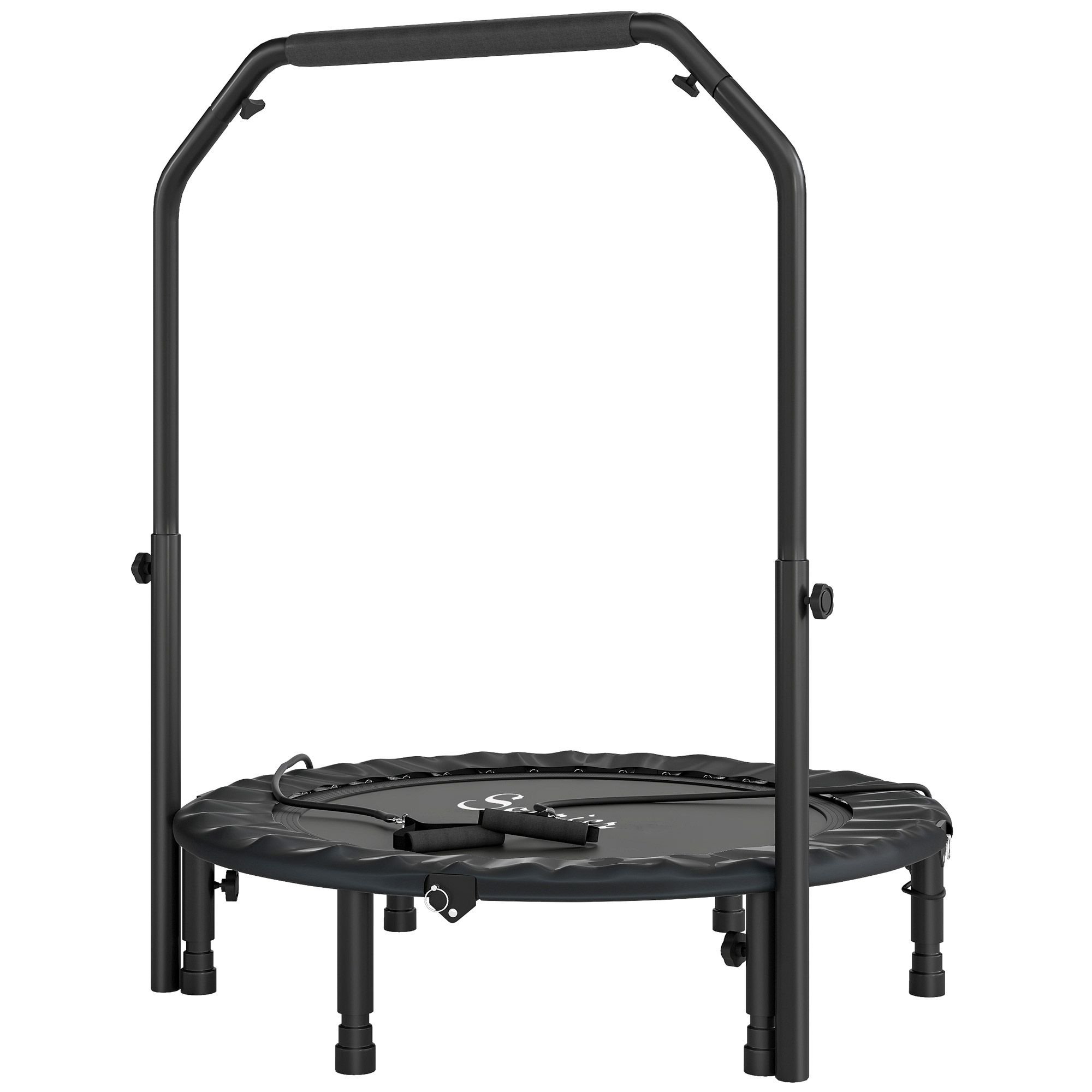 Experience aerobic workouts like never before with the Soozier folding rebounder trampoline. It allows for a full range of exercises that help you build muscle strength while you lose weight. This fitness trampoline features a steel frame, an adjustable handlebar, and six legs underneath to support up to 330 lbs. while providing balance and stability. When you're done, this workout trampoline for adults can be easily folded to save space, letting you easily store or take it with you on the go.
