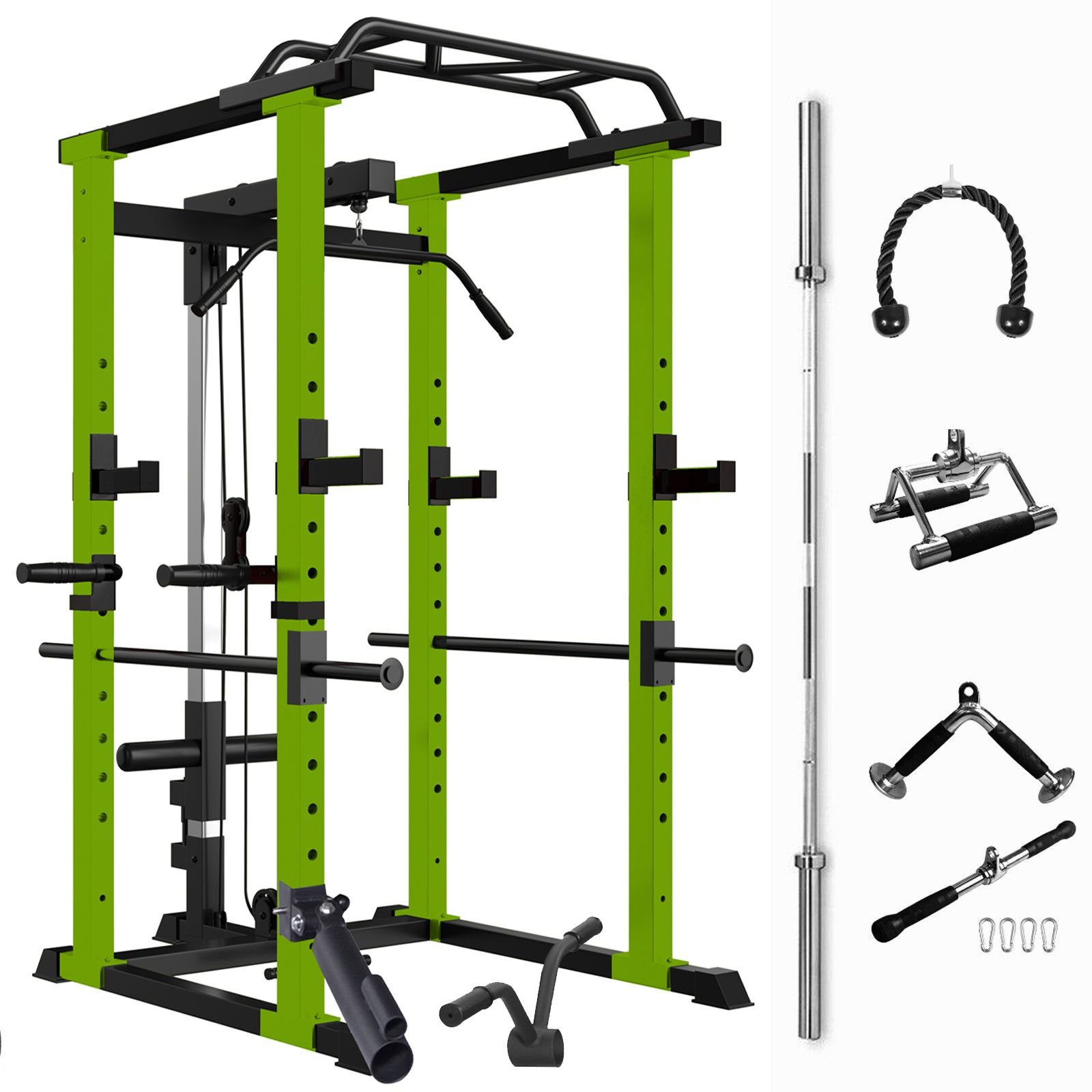Home > Green Multi-functional Power Cage, Home Adjustable Pullup Squat Rack 1000Lbs Capacity Comprehensive Fitness Barbell Rack Olympic Bar