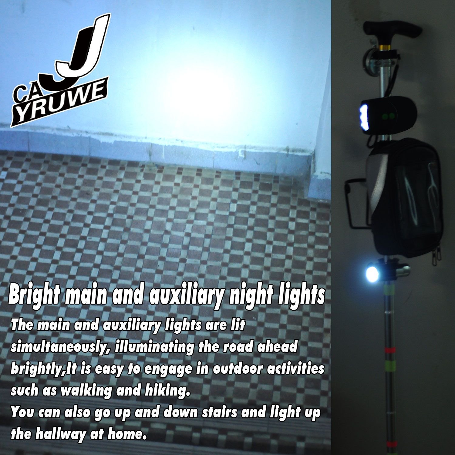 1.Equipped with primary and secondary night lights, this cane can be easily used at night ★★★CAJJYRUWE cane is innovatively produced by combining common problems encountered in daily life. It is equipped with a night light, storage bag, water cup holder, luminous label, bell, and can be used for free walking, hiking, and outdoor activities at night. As a walking aid tool, it is very suitable for elderly people, adult men and women. we also have two non slip feet that can be replaced and used.