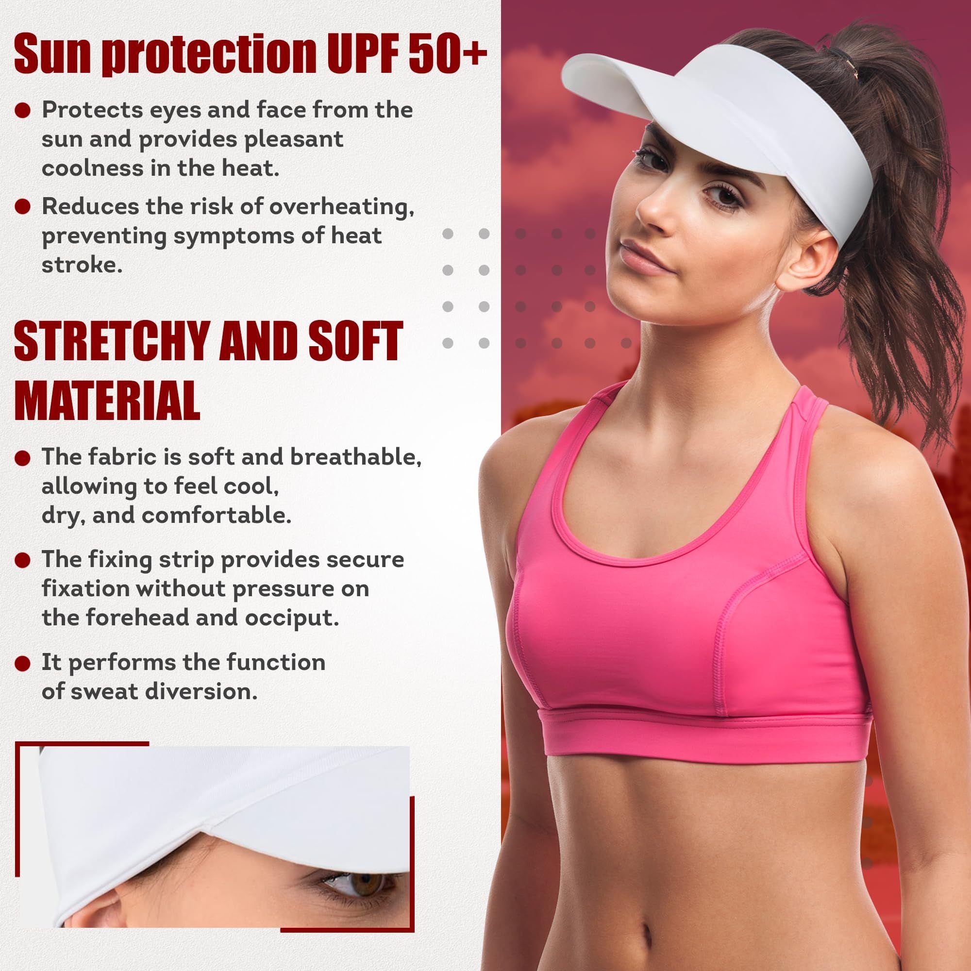White Visor Hats for Women and Men, One Size. Stretchable Women Visor Hats for Summer with Elastic Band, Open Top. Lightweight Visors for Women. Absorbent Running Visors for Men